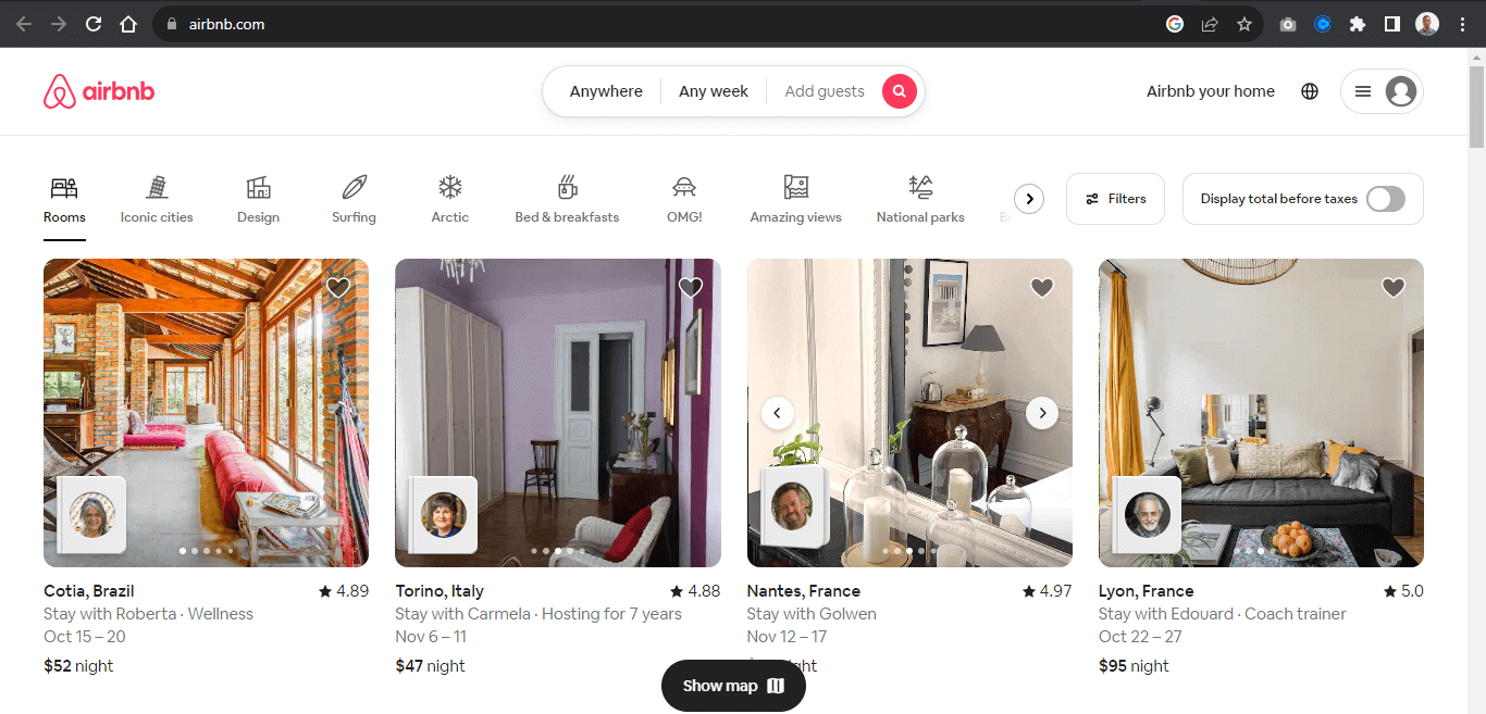 For example, the Airbnb website below contains four elements with header images. Each image within the header serves as a slide.