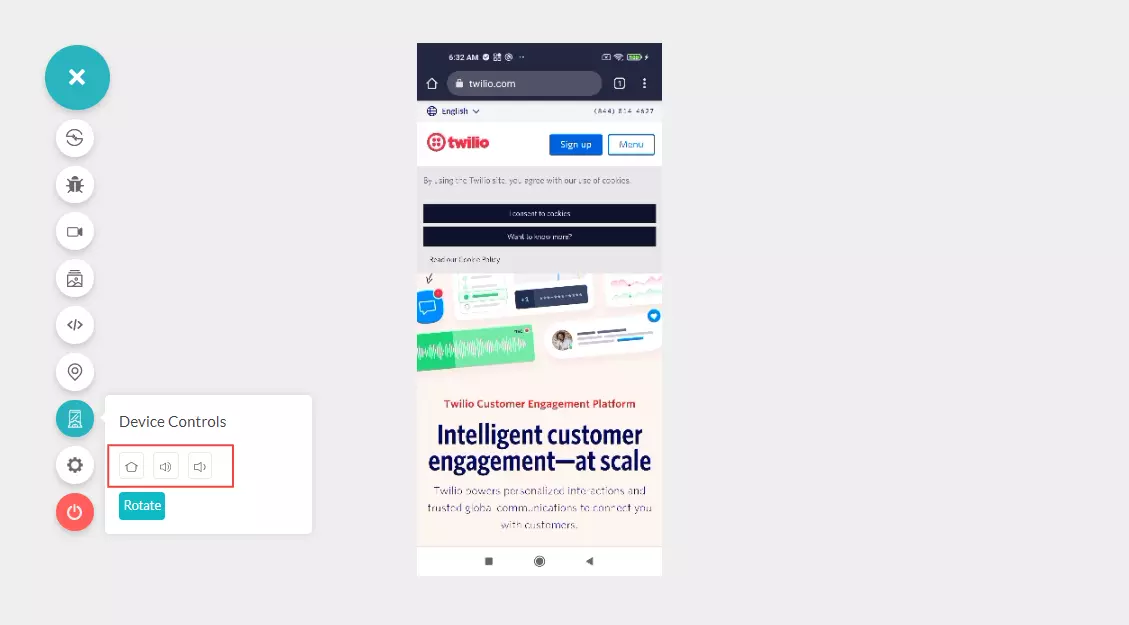 Using the device controls, you can change the keyboard language, rotate between portrait and landscape modes, return to the previous page, and increase/decrease the volume.
