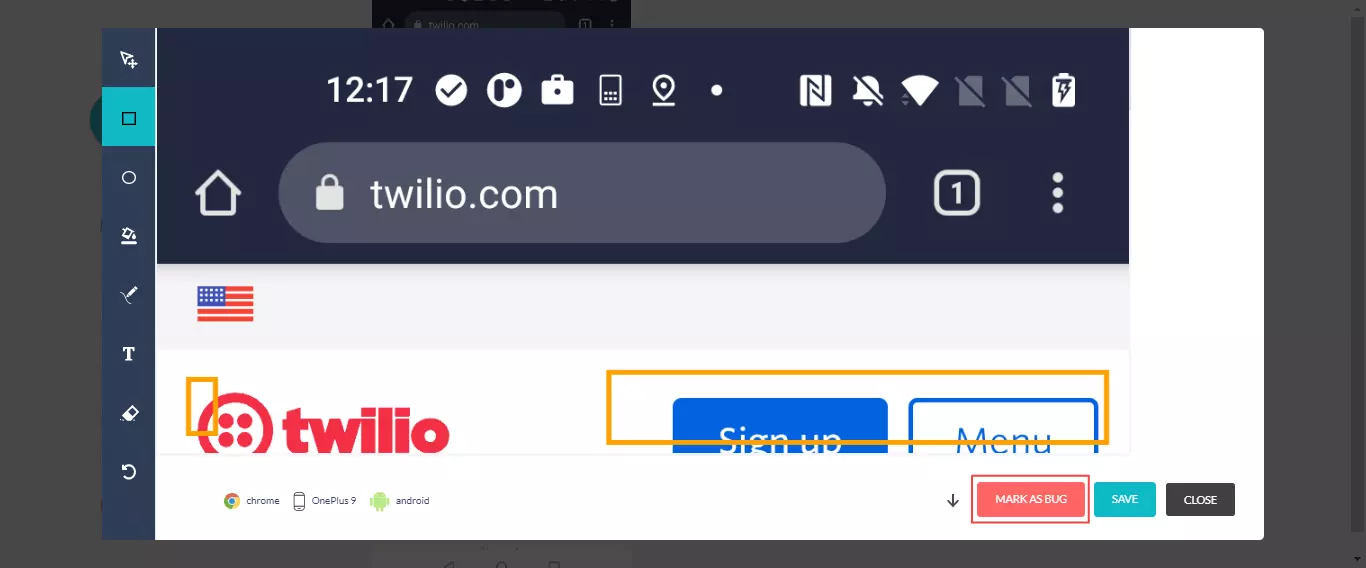 - Once the screenshot has been captured, you can either download it by clicking the download option or use the built-in image editor tools to highlight any bugs or tasks. After that, click MARK AS BUG.