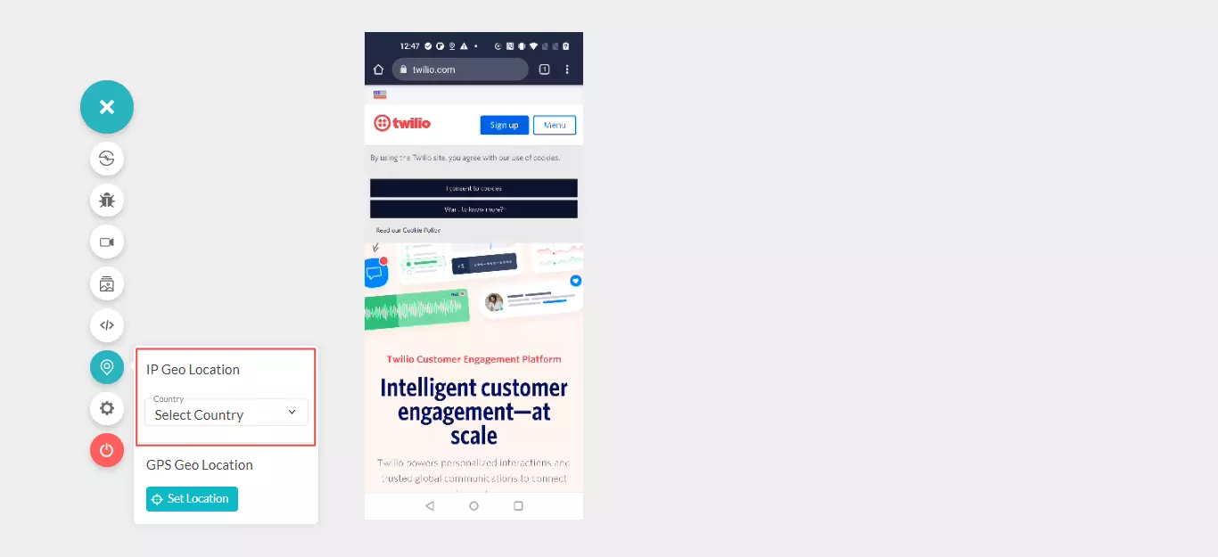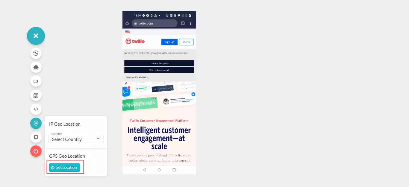 - Click on the location icon from the left tool bar and you'll notice a dropdown to select a geolocation.