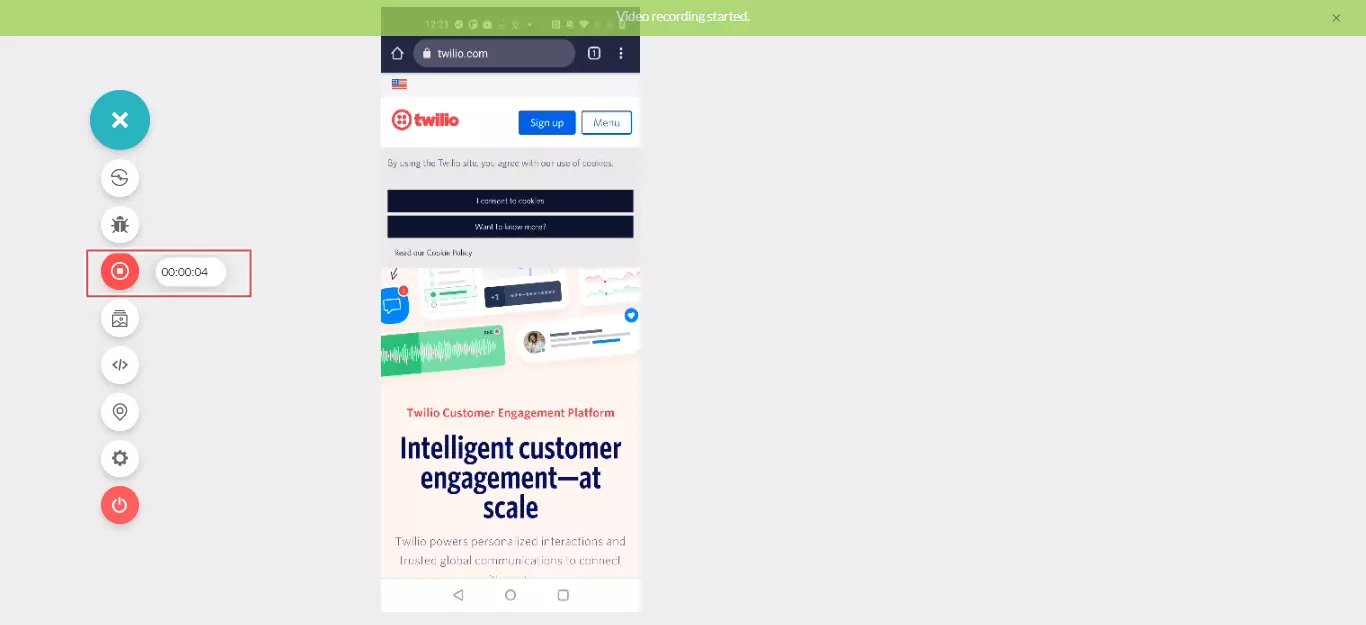 - The video recording of the current test session will start. To stop the test session recording, click again on the same Video recorder icon.