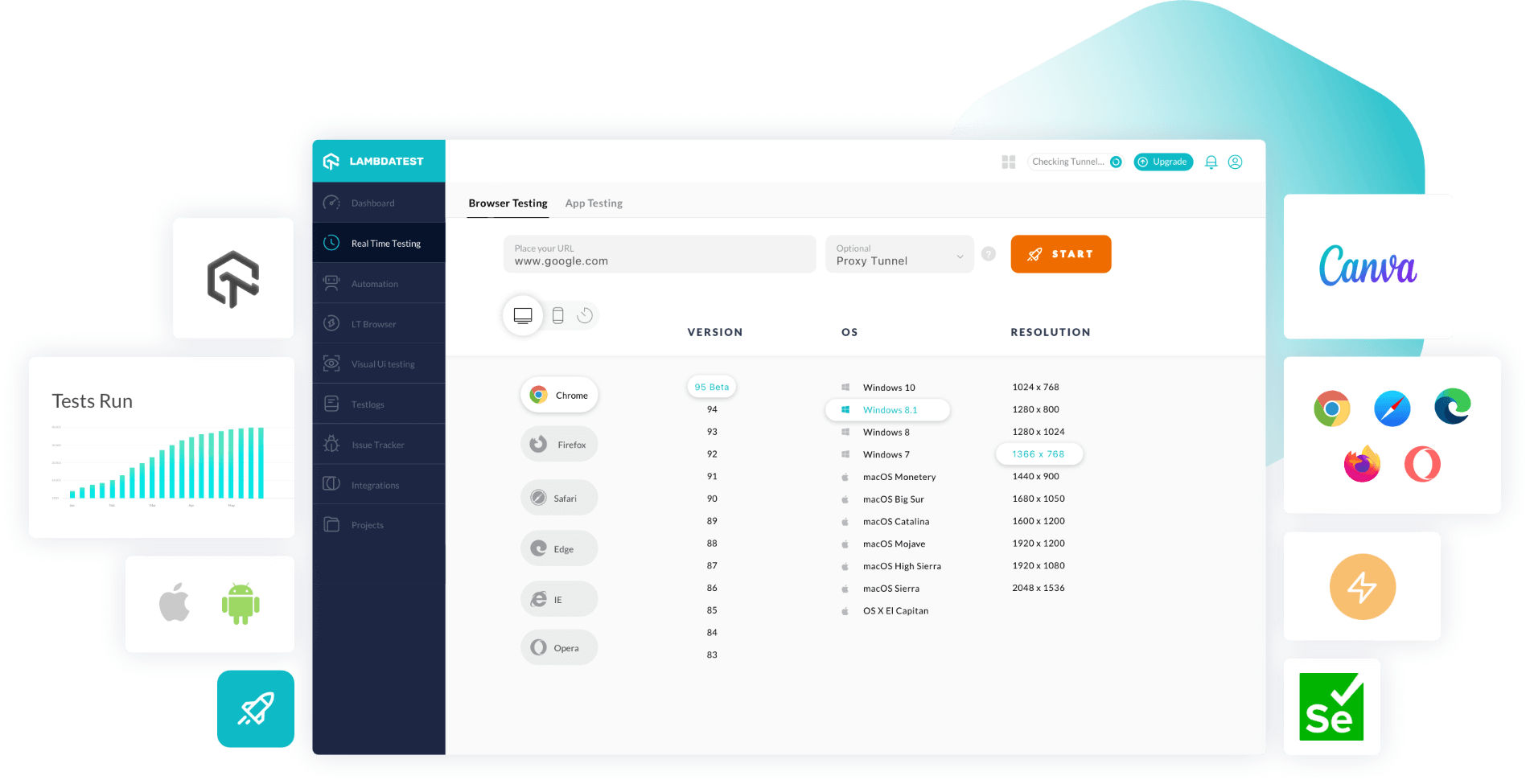 Test your Canva-created websites on different mobile and desktop devices using our high performing Device Cloud. You can test manually or set up automated test scripts to run across 3000+ real devices!